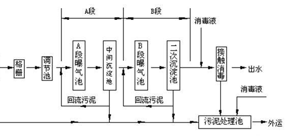 本工藝生化處理采用AB法,通過吸附、絮凝、分解和沉淀等作用,獲得良好的出水水質(zhì)。